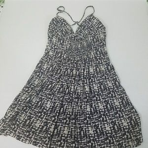 Spaghetti Strap Sundress in the prettiest print. Interlocking strap and elastic stretch back panel. Mini dress. Side pockets and adjustable straps.