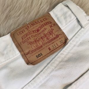 Amazing and gorgeous RARE white vintage 501 Levi's! 29" waist, 11.5" rise, 31" inseam! Great quality denim and these actually hug your butt! These are in great vintage condition with only a couple tiny markings that you can barely notice, that are pictured. First two pics are of me wearing this exact 501 style but in my size which is 24, I couldn't model this exact pair. Upon purchase, I can cut off and fray the hem to any measurement if you'd like. Seriously BEAUTIFUL jeans!!