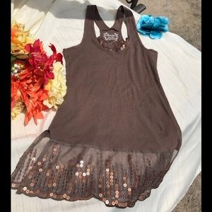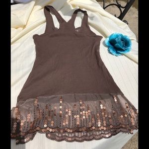 Embellished tank top brown tan Sequin tank top, small, light brown bronze sequin