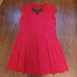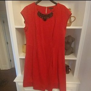 It's Red. Very Reeeed! A line dress with black jewel detail at top. Worn once.