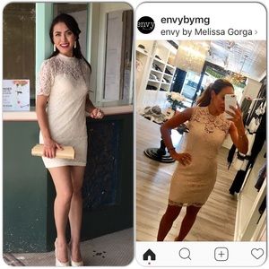 Features tiny sequins on the front panel. Sweetheart neckline with lace overlay, short sleeves and back opening.