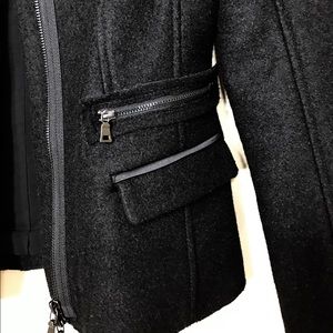 Impeccably tailored seams craft a streamlined and refined silhouette on a military-inspired blazer styled with a chic stand collar and cool zippered cuffs. A trio of pockets add classic details to a versatile piece perfect for wind-chilled mornings.