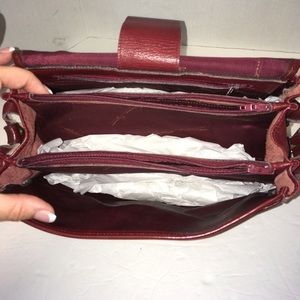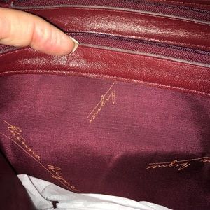 Classic vintage burgundy shoulder bag/ purse. 8" x 11" x 4" deep. Strap is adjustable to 17". There is some wear to the "A" and a few scuff, but great overall condition.