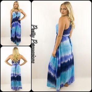 Tie Dyed Lace Up V-Neck Maxi Dress