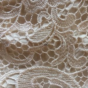 Francesca's beautiful lace midi dress. Color is ivory. V back with a zipper. Lace trim on bottom of dress. Inside lined with material so it is not see through. ONLY FLAW is tiny black mark on front middle of dress (see last photo) from the store. The blue tag stitching shows a tiny bit from the back. Approximate measurements: bust 30", length 34/35", waist 28". Please feel free to ask any questions or submit offers if interested :) HOST PICK 💕 Back to Basics party 6/9 ✨