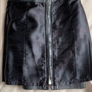 X by ETHNIX Leather zip up / down skirt w lining / / true black // not faded / #90s / perfect condition / not constricting / supple yet strong leather / the zippers have diamond-shaped detail / priced based on value (did my research), condition / Seriously like how fun is that bottom up zipper? / internal lining attached bottom of waistline + down the zipper