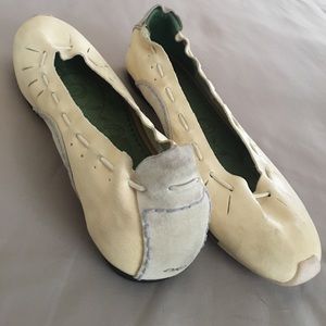 These are so cute! Good condition DKNY moccasin flats. Light ivory beige, genuine leather upper with a light blue suede heal and instep. Thanks! ๐๐๐๐