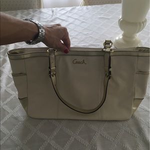 Beige/Ivory Coachbag with Gold trim and hardware!