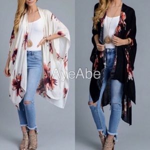 New Floral print kimono wrap coverup , black, cream or charcoal. Beach Trendy boho chic. Fabric: 100% viscose . Measurement 38"x46"