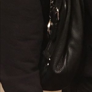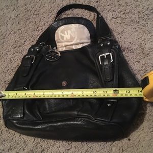 Very Nice black leather Michael Kors purse. Smoke free home. There is a small area on bottom inside where it has a few pin marks. Other wise purse is in great condition.