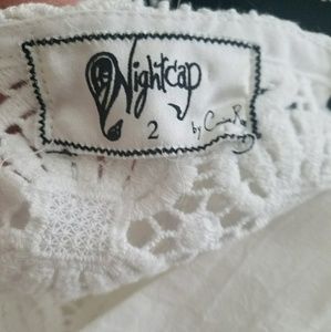 Gorgeous Nightcap Dress, NWT. Crocheted center, sleeves, and bottom trim. 3/4 Sleeves. Open slit in front and back. Zipper on side. DESIGNED & MADE IN CALIFORNIA!