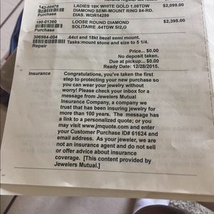 Ladies 18k white gold 1.07 TDW diamond semi mount ring ($2099.00) Round solitaire .64 DW SI2,G. ($2395.00). Size 5. worn about 6 months then professionally cleaned and stored picture #4 of appraisal. Last pic Is receipt Also have additional sizing receipt. ($60.00). Didn't include taxes in prices 🚫 smoking home 🏡