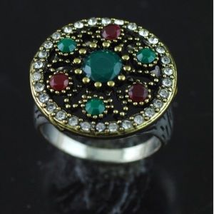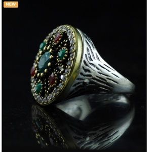 Indian Emerald & Ruby White Topaz Classic GP Ring 11 Grams