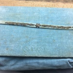 Velvet with Zardozi gold bead Embroidered clutch. This one is coming for a collection of a lady who use to work at the NYC fashion industry. I have amazing pieces from the 30's through the 60's. Blue velvet. Color is slightly faded but still look beautiful. 8"x5"x3". Snap closure and a back holding strap. 2 slip pockets inside. Made in India.