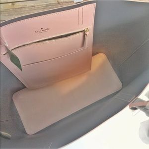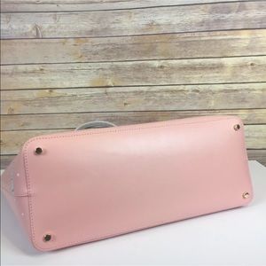 This adorable and generously sized bag by Kate Spade is just what you need to tote your goodies around in style this season. Genuine leather. 14k light gold plated hardware. 8" drop. Open top with footed bottom. Exterior features hanging charm, gold embossed logo, card slot on the back. Interior features one zip pocket and one slip pocket. 17" x 14" x 7". Brand new with tag. Purchased online directly from Kate Spade, 100% authentic. This bag did not come with a dust bag.