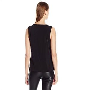 Black in color, embellished cutout twist neckline, sleeveless, straight hem, soft silky fabric is 96% polyester, 4% elastane, machine washable. Brand label is cut through to prevent retail store returns. NWOT Comes from a smoke free home. Measurements: 1X bust-44 to 52 (stretched), length-25