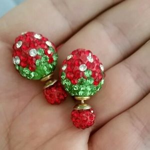 Super cute two way earrings filled with crystal rhinestones alloy gold studs.