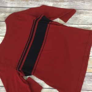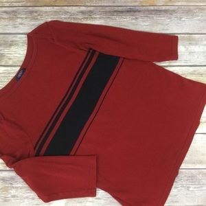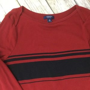 Red and black Chaps long sleeve top. Measurements: length shoulder to bottom approx 25". Pit to pit approx 39". EUC. Size 1X.