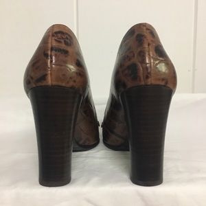 You will always be work appropriate in these chocolate brown crocodile-print high heel loafers that are the perfect mix of masculine and feminine.