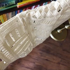 Stunning white lacey/crochet blouse. 25" L, 19" P2P. Fits like a small in other brands. Size is xxs.