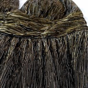 Glow and sparkle in this radiant bronze metallic Aidan Mattox gown! Incredibly flattering long dress with a soft ruffled skirt and plunging V-neck and back. Sleeve-less. Crushed and gathered waist. A little bit of extra padding in the chest for support. Measures about 62" from shoulder to hem. Material has a crinkled feel that flows as you move in it! ๐Host pick for Holiday Glam 12/20!๐ Perfect for prom or any formal event!