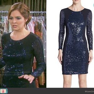 New with tags! Identical to the dress βworn on tvβ on Days of Our Lives! ABS by Allen Schwartz Open Back Sequin Mesh Cocktail Dress Indigo.