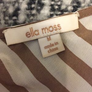 Lovely silk dress by Ella Moss with beige and white stripes and functioning zipper details near shoulders. Size M. Fit is true to size. NOTE: This dress does not include the liner - I used a simple nude liner and all was well in striped zip dress land. Dress is short sleeved, with v-back and boatneck. About 31" in length. In beautiful condition! Happy Shopping! 🦄🦄