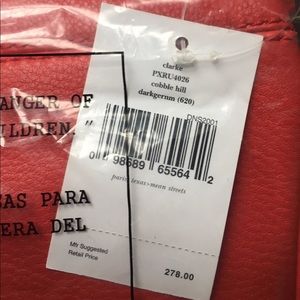 Kate Spade Cobble Hill Clarke bag in Dark Geranium. Cross body adjustable/detachable strap. Top zip on flap as well as interior zip, 3 interior pockets, lined. Gold printed logo on front. Soft pebbled leather. NEW WITH TAGS, still in original wrapping! (Actual item in last two pics.)