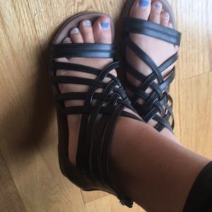 These super comfortable sandals are perfect! Gladiator style with zipper in the back. These do run larger than expected, more of a six and half rather than a six.