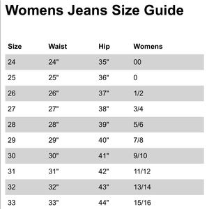 @cali05ch Size 25, waist 29" hip 40" around laying flat. Size 26, waist 30" hip 40" around laying flat.