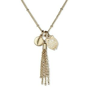 • Highlights: Shiny Antique Gold-Tone Finish 16" Long Chain with Tiny Gold Spaced Pieces, Sweet Owl, Tassel & Gold Round Charms. Secured Lobster Clasp Closure.