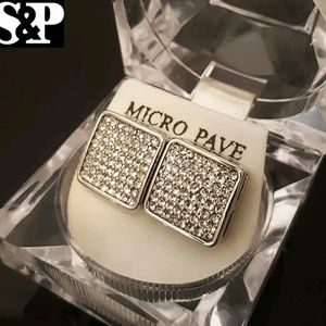 Swag White Gold PT Micro Pave Iced Out Earrings