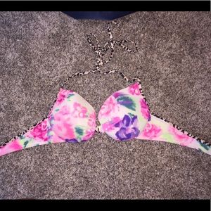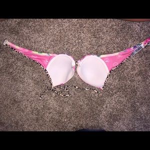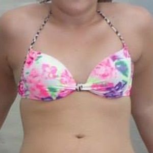 Size medium floral and cheetah print swim tip from pink. It's a little bit faded compared to when I originally bought it but other than that the top is in great condition!