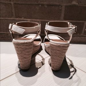4.5in white faux leather wedges with adjustable straps. Have hardly been worn and in great condition.
