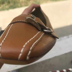 Authentic Prada leather shoes vero cuoio. Made in Italy with off white stitching. Low heel. Worn a few times but in excellent condition. Size 38 1/2. No box