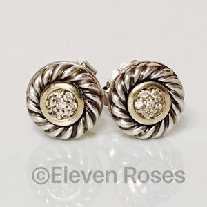David Yurman Classic Cable Diamond Cookie Earrings - 925 Sterling Silver & 750 18k Gold - Posts With Butterfly Backs (for pierced ears) - Preowned / Preloved May Show Slight Signs Of Having Been Worn. Listing Images Are Of Actual Item Being Offered