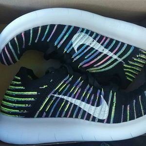 NWT Nike Free RN Flyknit Black Rainbow Shoe