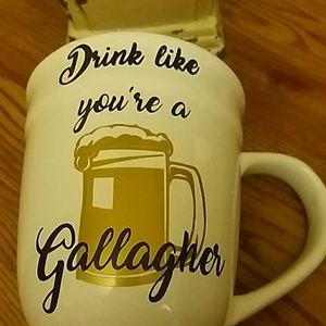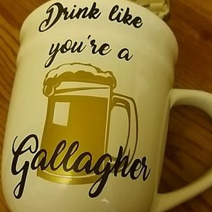 Drink like you're a Gallagher. 😁 16.5 oz stoneware contemporary white coffee cup. Microwave safe. Hand wash only. Mug is $18. Just the decal (for your own mug) is $9. If you are interested in that, let me know and I will make a separate listing.