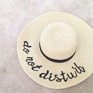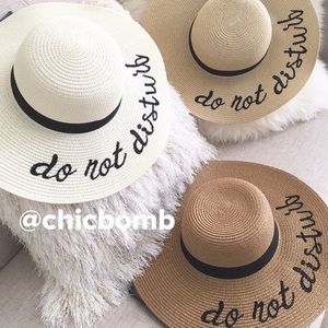 MUST HAVE embroidered summer wide brimmed hat. Available in 3 shades. This listing is for IVORY. Brim measures 16.5" with black embroidery statement . Sturdy brim not too floppy. Well made high quality.available in ivory, white ivory and tan. Follow me on INSTAGRAM: @chic_bomb and FACEBOOK: @shopchicbomb