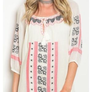 Ivory Coral Embroidered Dress Keyhole With Tassel .
