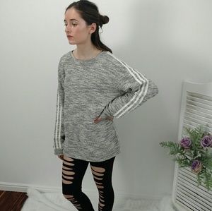 MARBLED KNIT STRIPED SLEEVE SWEATSHIRT! A LARGE CAN FIT UP TO XL AND STILL BE ROOMY! THIS IS ANOTHER PIECE I ABSOLUTELY LOVE! ITS REALLY SOFT, LIGHTWEIGHT AND OH SO COZY! 💞 FABRIC IS COTTON.