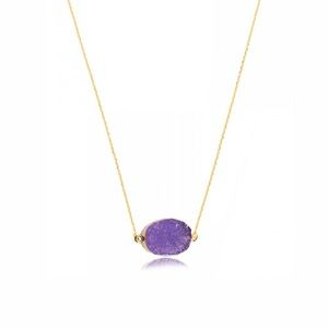 Drusy Geode Resin Dainty Pendant Necklace with a Gold chain