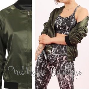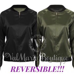 The quality of this jacket is absolutely INCREDIBLE and even better it's REVERSIBLE! Having a dark olive day or having a black satin day... this will solve everything. Has functional pockets, gold tone zipper, elastic waist, comfortable cuffs and the best lining. Fits true to size to the size. Recommended sizes XS (00-0) S (2-4) M(6-8) L(10-12) adorable with workout capris and a sports bra. The perfect jacket for the gym or with skinny jeans or with your favorite skater dress.