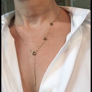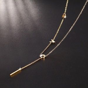 Gorgeous gold lariat as the lower case letter 'L' with trailing o...v...e, spells out the word LOVE. The necklace looks reverse only because its a picture.