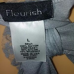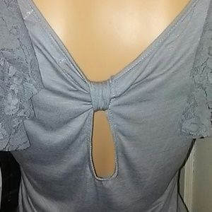 Very cute top is gray with adorable lace along the shoulder area of top.It has a cute key hole in back.
