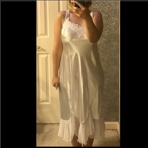 ✳️Lacey floral appliqués beaded with pearls at bust line ✳️measures Approx 39" from underarm to bottom of hem.