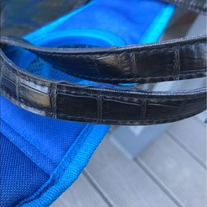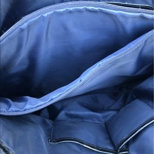 XL Black Tommy Hilfiger Tote w/embossed pattern. Not Leather but a heavy PVC vinyl. Preloved but still a great tote. Ton of pockets and a padded insert to hold tablet. 16 inches wide by 12 inches tall. The handles are 9 inches. You can get arm thru it to carry but it will fit snug to your armpit. Please see the minor scuff to the front of picture #2. Please see the handle fray in the last picture. Price reflects these minor imperfections. No stains or tears. All zippers work. Smoke free home.