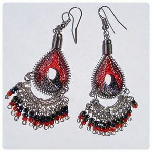 This Beautifully Handmade Peruvian Silk Thread Earrings is exceptionally high quality. Features ruby and black silk and beaded accents! Embellish your beautiful ears with this fine piece!