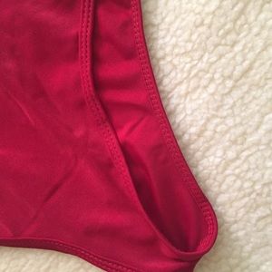 Sheer fabric on top with embroidered floral Appliqué. Deep V halter style. Red and Black available. Can be worn as bodysuit or Swimsuit if you dare! 😊