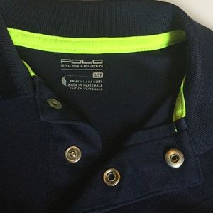 Authentic Polo Ralph Lauren polo short short in lime green and navy blue⚜100 %polyester⚜in good used condition/removed child's name sticker see pic three and left iron residue